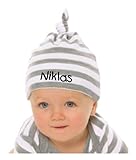klicken Sie für Baby Mütze bedruckt mit dem NAMEN des Kindes (Farbe grau/weiss) (Gr. 0 - 74) Preis
