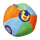 Mit etwa einem halben Jahr lernen Babys, Geräusche aktiv wahrzunehmen und zu unterscheiden. Das ist wichtig für ihre sprachliche Entwicklung. Der Kuschelige Sound-Ball fördert diese Fähigkeit, in dem die Kinder zum Motiv passende Klänge selbst auslösen können. Drücken sie leicht auf das Bild des Autos, ertönt Tut-Tut, die Uhr macht Tick-Tack. Beim Xylophon ist ein sanftes Ding-Dang-Dong zu hören und die gelbe Ente macht Quak-Quak. Die Bilder zum Draufdrücken sind erhaben auf den Ball gestickt, was Babys in dieser Entwicklungsstufe zum Fühlen und Betasten einlädt. AuÃerdem lässt sich der Ball prima rollen und von sich werfen. Oder man kr abbelt schon mal hinterher. In jedem Fall bringt er die Kleinen in Bewegung und trainiert die räumliche Koordination. Beruhigend für Eltern: Die Klänge sind angenehm leise zu hören. Der Bezug aus weichem Babyplüsch lässt sich abnehmen und bei 30 Grad in der Maschine waschen.